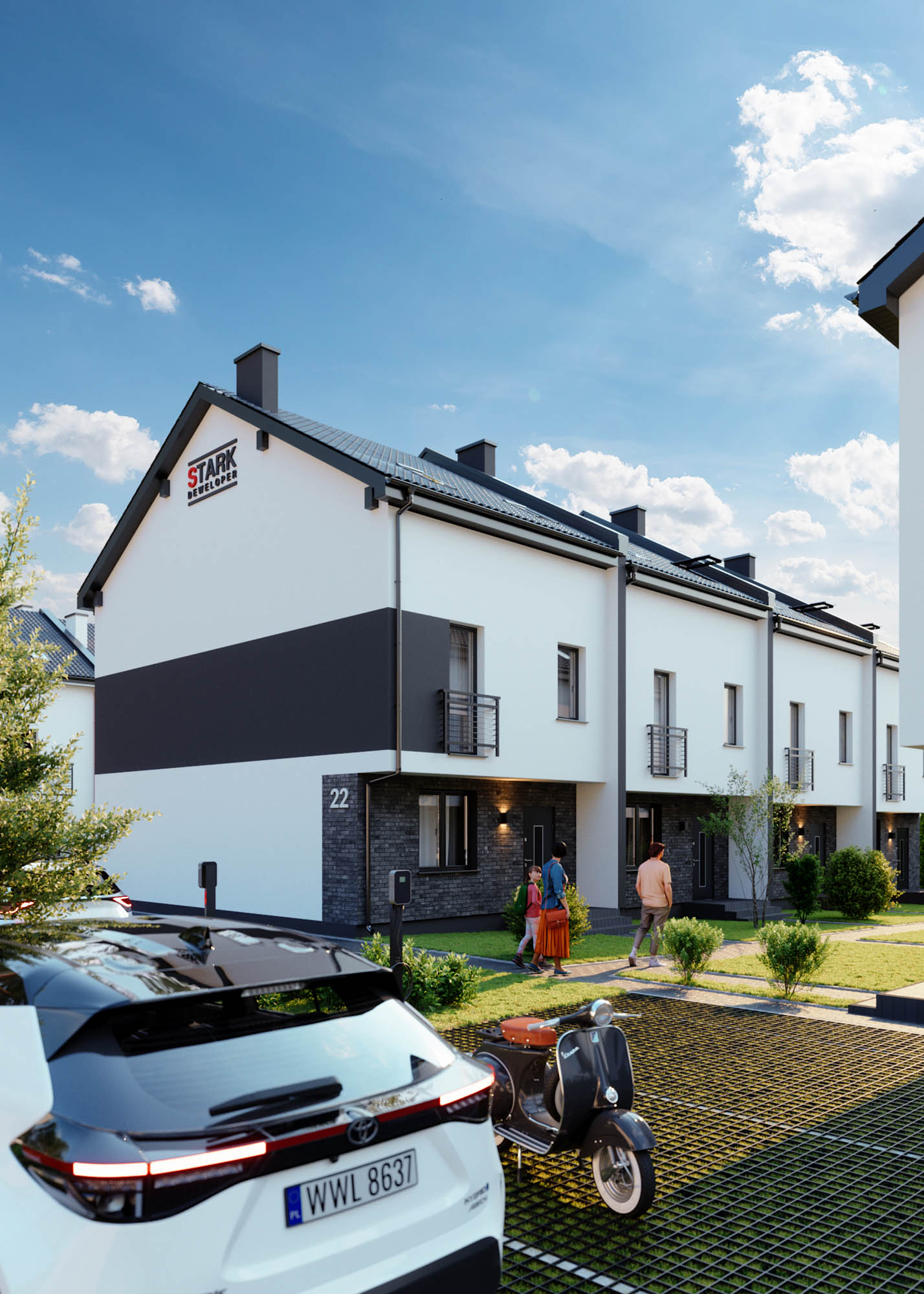 Każdy z domów oferuje przestronne i komfortowe wnętrza, a ciche, kameralne otoczenie sprzyja relaksowi i odpoczynkowi od miejskiego zgiełku. Jednocześnie wszystkie udogodnienia miasta pozostają w zasięgu ręki.
