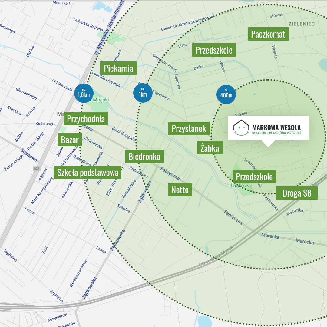 Osiedle Markowa Wesoła to nowa inwestycja położona niedaleko centrum Warszawy, składająca się z dwóch szeregów zabudowy, w których znajduje się 8 dwupoziomowych lokali. Nowoczesne technologie zastosowane przy budowie zapewniają wysoką jakość wykonania oraz szerokie możliwości aranżacyjne.